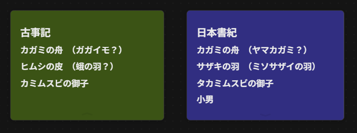 少彦名が乗って来た舟の素材、そして衣服の素材について解釈の違いがあるようです。