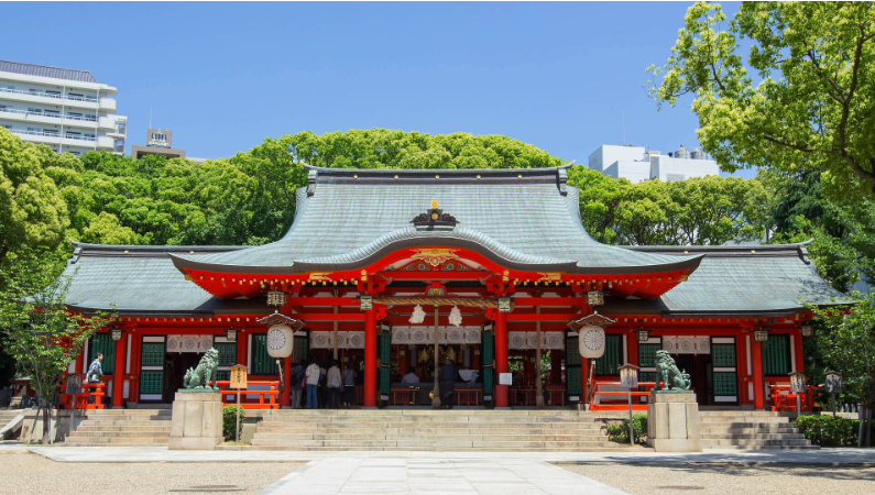 主祭神は稚日女尊。蛭子大神を祀る西宮神社は隣接する西宮市内にある